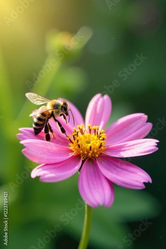 Fototapeta premium delicate flower and bee together , pollinators, bees, garden