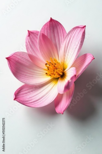 © Phetthanousack, Fototapeta premium Delicate flower petals unfold on a white surface, isolated object, , botanicals
