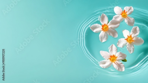 Naklejka premium Delicate flowers floating on turquoise water, serene and calming composition.