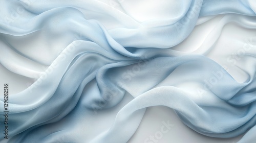 Fototapeta premium Delicate flowing blue and white fabric draped with soft shadows
