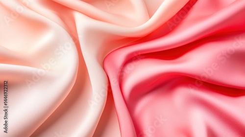 © musthofa, Fototapeta premium Delicate, flowing silk fabric drapes in a soft, ombre color gradient.