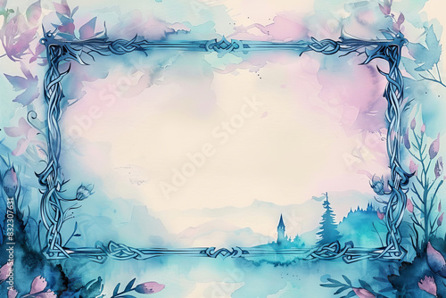 Fototapeta premium Delicate frame with romantic watercolor background and Celtic patterns