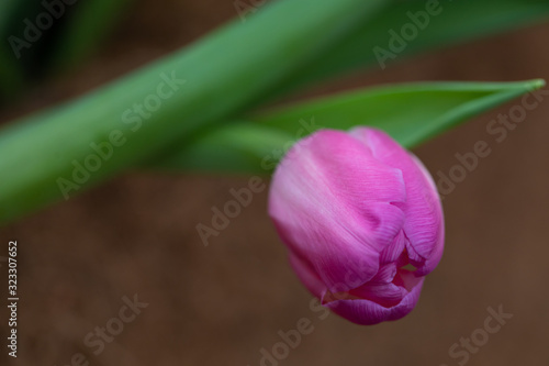 Fototapeta premium Delicate fresh purple tulip bud, close up, selective focus