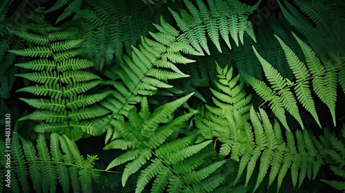 © Images, Obraz premium Delicate green fern fronds on dark green background