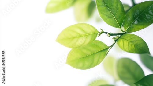 © Jeloart, Obraz premium Delicate green foliage against a luminous white background, a nature's whisper