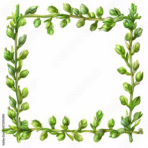 © Hungarian, Naklejka premium Delicate Green Foliage Frame with Blossoms