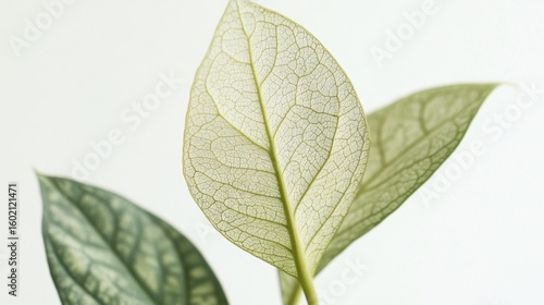 © PENJAN PANTANA, Obraz premium Delicate Green Leaves with Intricate Veins on Pale Background