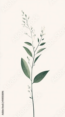 © Hungarian, Fototapeta premium Delicate Green Plant With Small White Flowers