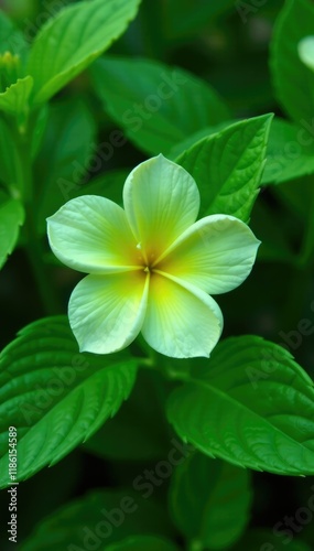 © สิริวุฒิ นาคโคตร, Fototapeta premium Delicate green plastic flower nestled among leafy greens, botanical, botanical