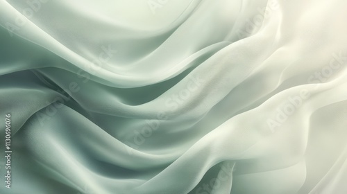 © Ilqara, Fototapeta premium Delicate green silk fabric background, offering space for text or product presentation.