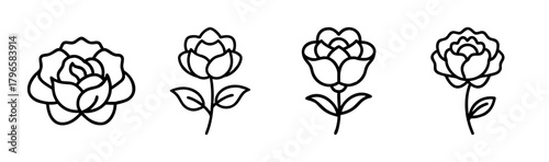 Obraz premium Delicate hand drawn peony flowers collection simple botanical line art...