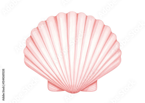 Fototapeta premium Delicate hand-drawn shell in watercolor, soft coral and ivory palette,...