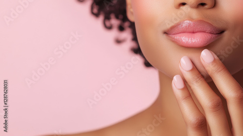 © praewpailyn, Obraz premium Delicate hands gently touching soft lips, showcasing beauty and care