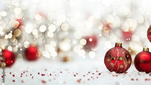 Fototapeta premium Delicate holiday wall decals create a warm ambiance with bokeh lights and festive ornaments, evoking a cheerful winter spirit