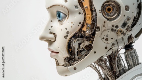 Fototapeta premium Delicate Humanoid Robot Face in Detail