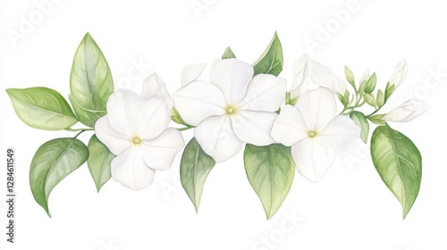 Fototapeta premium Delicate jasmine blossoms and lush foliage create a serene watercolor...