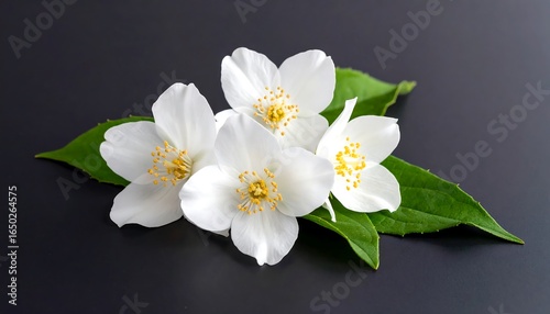 © Armaya, Obraz premium Delicate jasmine flowers on dark surface