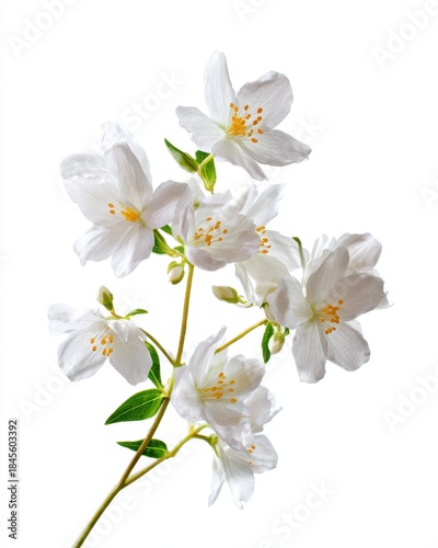 © Maryna, Obraz premium Delicate Jasminum Officinale Blossoms: A Portrait of Nature's Beauty on a Crisp White Background