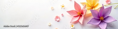 © methinee, Naklejka premium Delicate kusudama flower in shades of purple and yellow on white background, colors, decorative, flowers