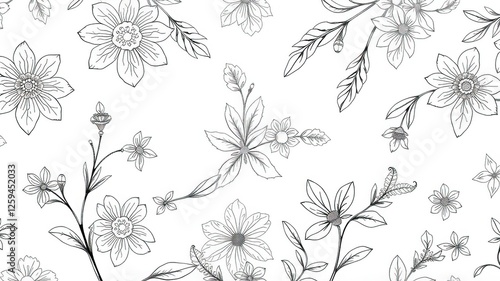 Fototapeta premium Delicate Lace Adorned with Ornate Botanical Sketches