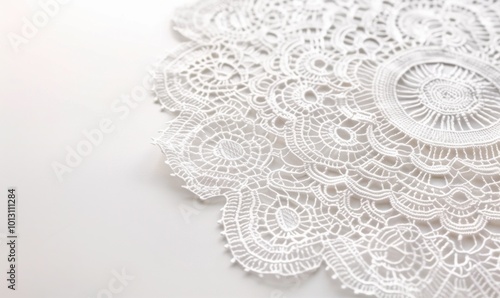 Obraz premium Delicate lace doily, white background, 4K hyperrealistic photo