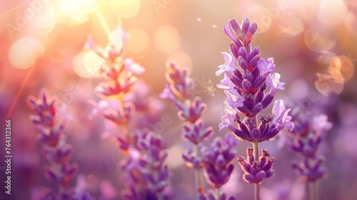 Naklejka premium Delicate lavender blooms bursting with tranquil energy AI generated...