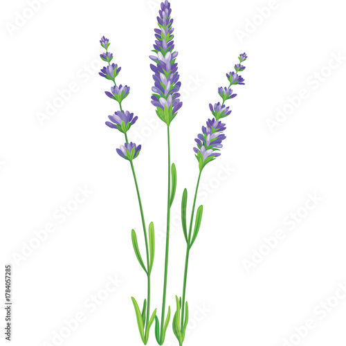 Naklejka premium Delicate Lavender Stalks with Purple Blossoms and Green Leaves Isolated on...