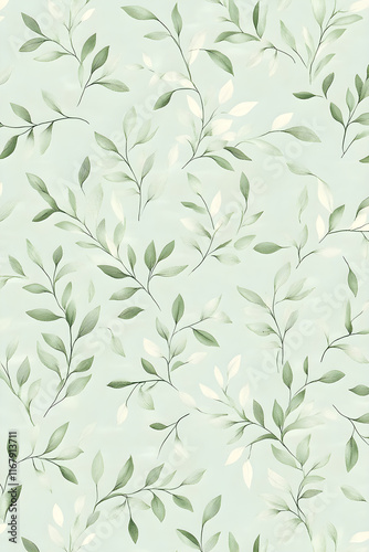 Fototapeta premium Delicate Leaf Patterns on Pastel Green: A Harmonious Nature-Inspired Design for Serene Spaces