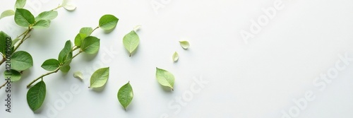 © Temteen, Naklejka premium Delicate leaves scattered on white wall surface, minimalist, organic