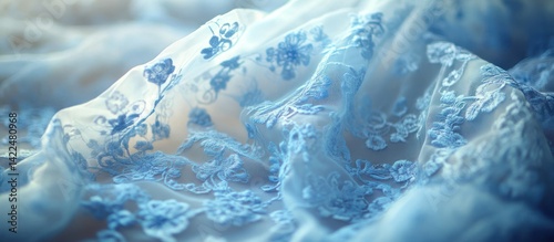 © Almahyra, Naklejka premium Delicate Light Blue Lace Fabric Texture