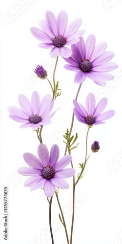 © Yothin, Fototapeta premium Delicate Light Purple Flowers on White Background