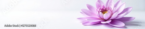 © Atittaya, Fototapeta premium Delicate Lilac Chrysanthemum petals unfolding on a pure white surface, flowers, single bloom