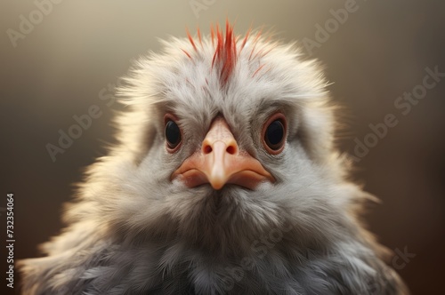 © juliars, Fototapeta premium Delicate Little chicken closeup. Farm baby bird. Generate Ai
