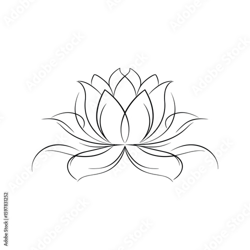 © MdRafiul, Fototapeta premium Delicate lotus flower line art floral botanical