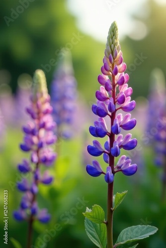 © chaiwat, Obraz premium Delicate lupine flowers sway gently in the breeze, , field, spring