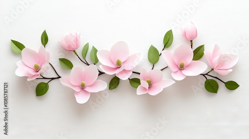 Fototapeta premium Delicate magnolia flowers blooming gracefully against a pristine white...