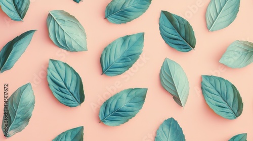 © AlfaSmart, Obraz premium Delicate Mint Leaves Pattern on a Pastel Background