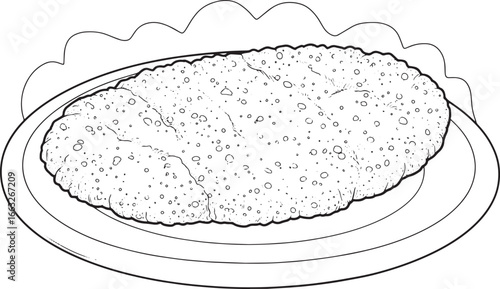 © Cici, Fototapeta premium Delicate monochrome illustration of schnitzel on a decorative pl