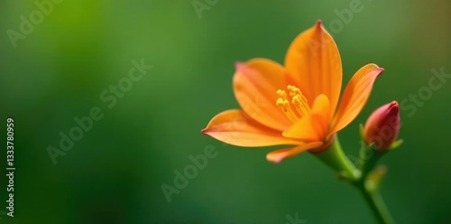 Naklejka premium Delicate orange blossom with three tightly closed buds on a green stem, bud,...