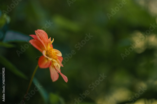 © Caseyjadew, Fototapeta premium Delicate orange dahlia flowers growing in cottage garden