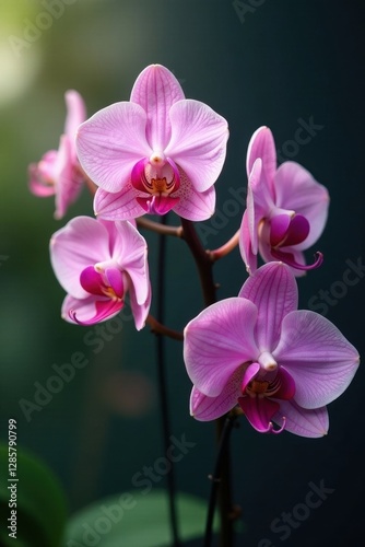© Duangjai, Obraz premium Delicate orchid branches, vibrant blooms unfurling , leaves, botanical, flora