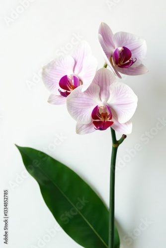 © Chanchai, Fototapeta premium Delicate orchid petals unfolding on a pristine white background, greenery, exotic