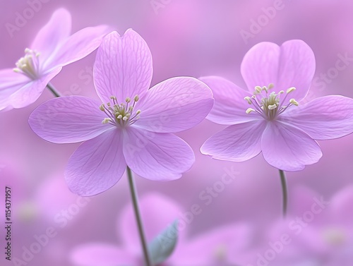 © lisa, Fototapeta premium Delicate Pale Pink Flowers Bloom Softly