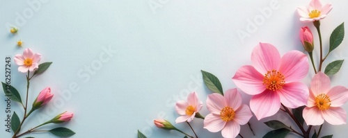 Naklejka premium Delicate pastel blooms on textured paper backdrop, papercraft, petals