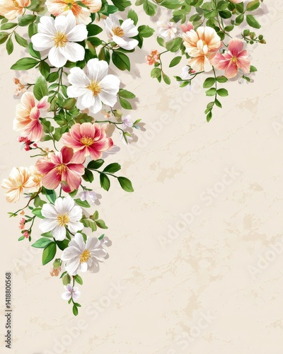 Naklejka premium Delicate pastel blossoms cascade against a light beige background creating a...