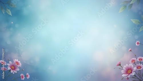 © Henhen, Obraz premium Delicate Pastel Flowers Against a Soft Blue Background