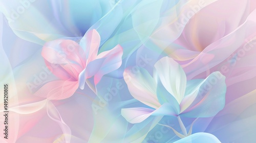 Fototapeta premium Delicate pastel flowers and flowing fabric