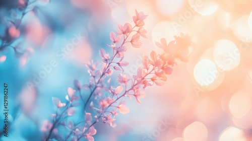 Fototapeta premium Delicate pastel flowers softly illuminated, creating an ethereal and dreamy atmosphere, perfect for spring-themed designs.