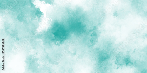 Fototapeta premium Delicate Pastel green or white sky watercolor painting, Soft watercolor...