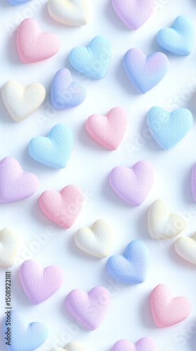 Fototapeta premium Delicate Pastel Hearts Scattered on Soft White Background with Subtle Textures